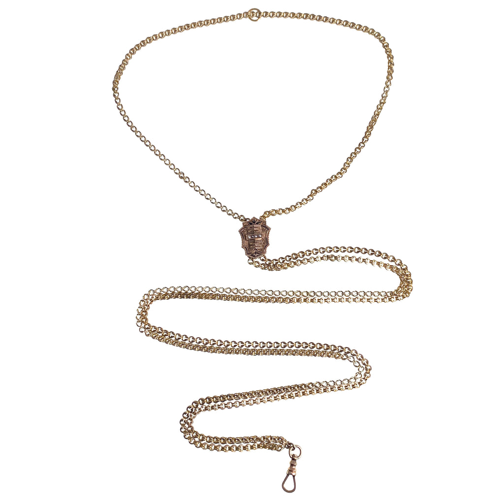 Longchains are sometimes referred to as muff chains and vice versa. A muff chain was long enough, when worn around the neck, to pass through a lady’s hand warmer and the ends could be attached to each other thus suspending the muff. These were popular in the 18th century.