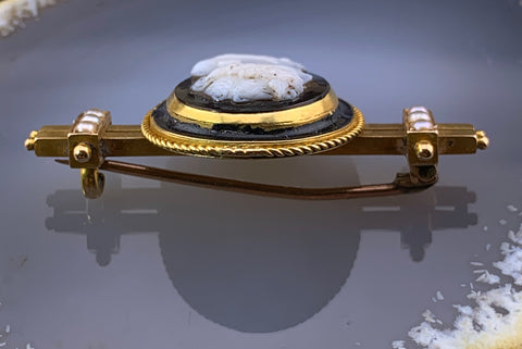Antique 15K & Hardstone Bacchante Cameo Brooch